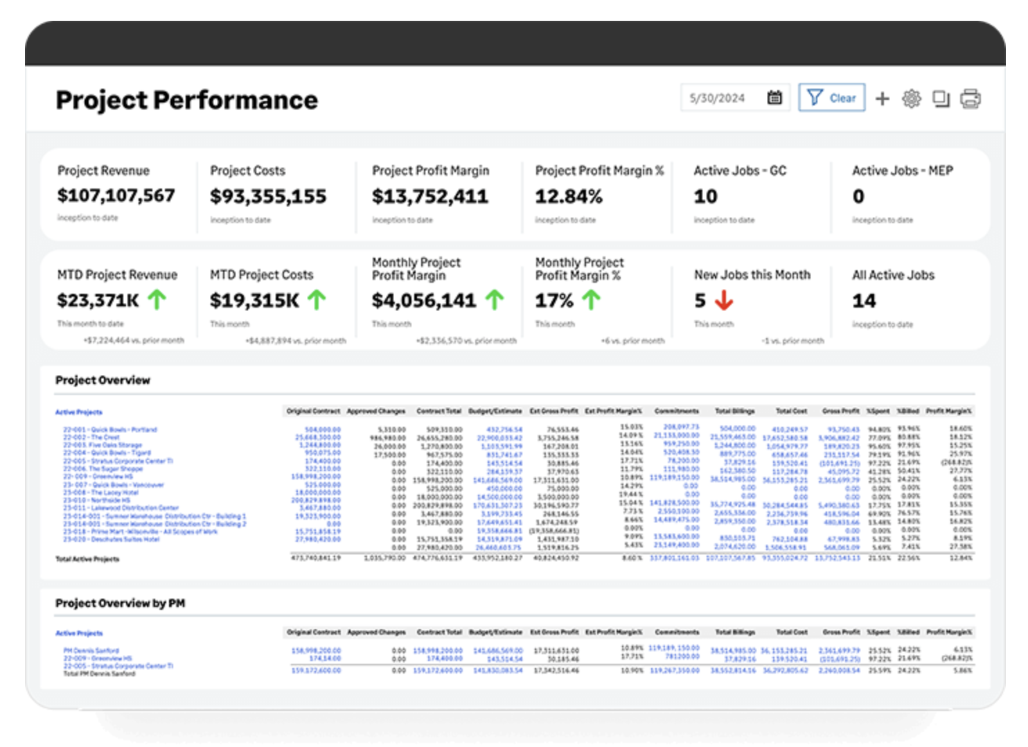 Access historical WIP data by job and gain real-time insights into project progress and financial health.